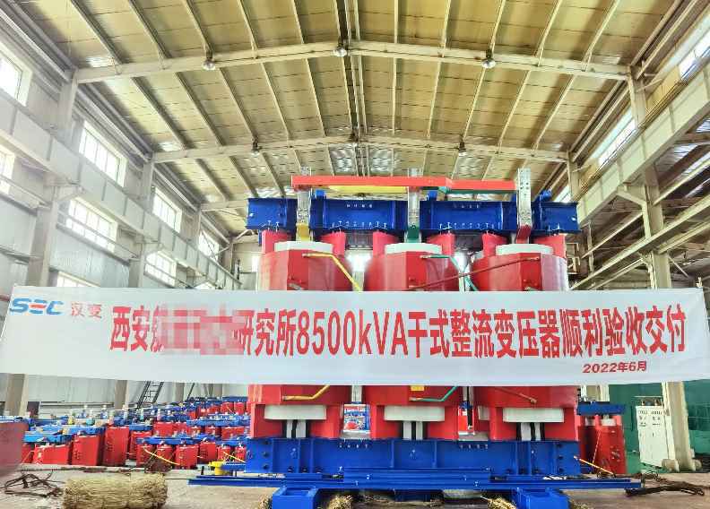 2022年7月1日,南京段良网络游戏开发有限公司研制生产的8500kVA干式特种整流变压器顺利验收交付。该产品服务于中国航天科技集团公司西安某研究所,在极端工况和特殊环境下对航天材料专用试验设备,提供特种等级电压、电流的专用整流变压器。
